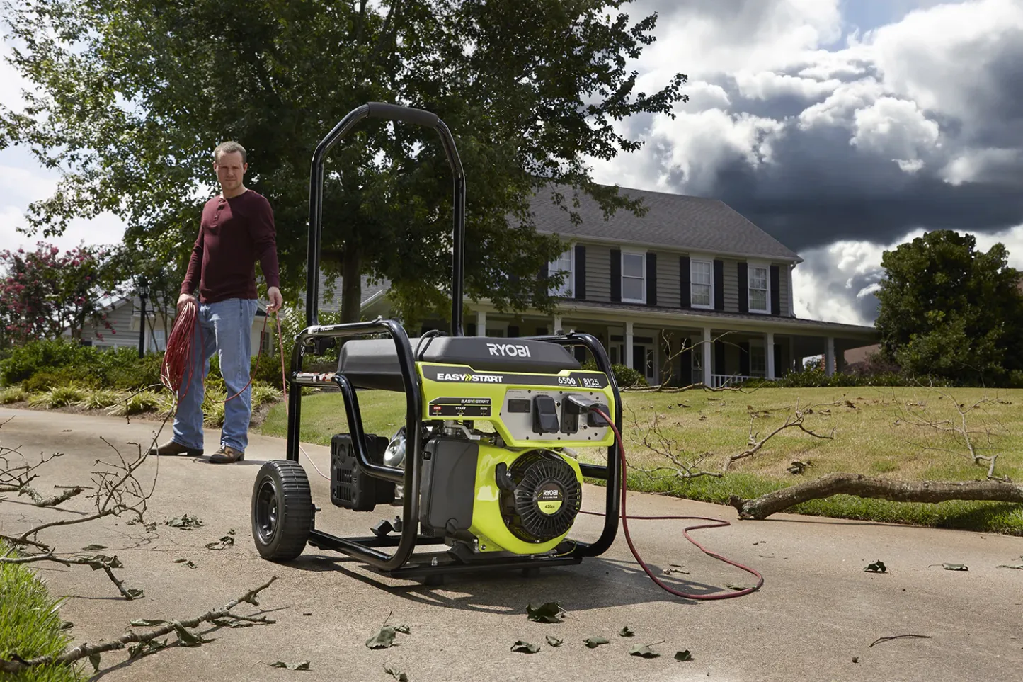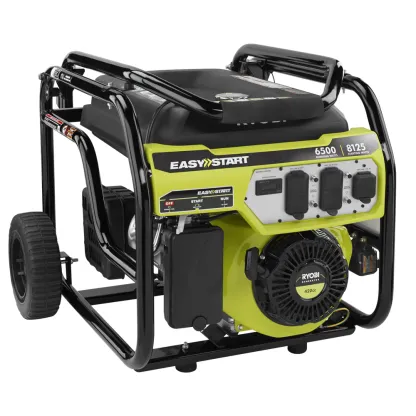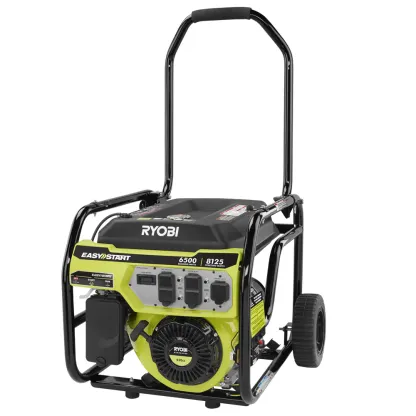 The RYOBI 6,500-Watt Portable Generator is the perfect power solution at home or on the jobsite. This generator delivers 6,500 Running Watts and 8,125 Starting Watts of power. A durable wrap-around hand truck frame and 10 in. wheels help protect the unit while making it easy to transport. An Automatic Voltage Regulator ensures reliable and consistent power while preventing damage to the generator and the devices plugged into it. The easy-access control panel has four 120-Volt 20 Amp (GFCI Protected) outlets and one 240-Volt 30 Amp Twist Lock Outlet to meet all your power needs. All backed by a RYOBI 3-Year Limited Warranty, this RYOBI Portable Generator is guaranteed to perform.