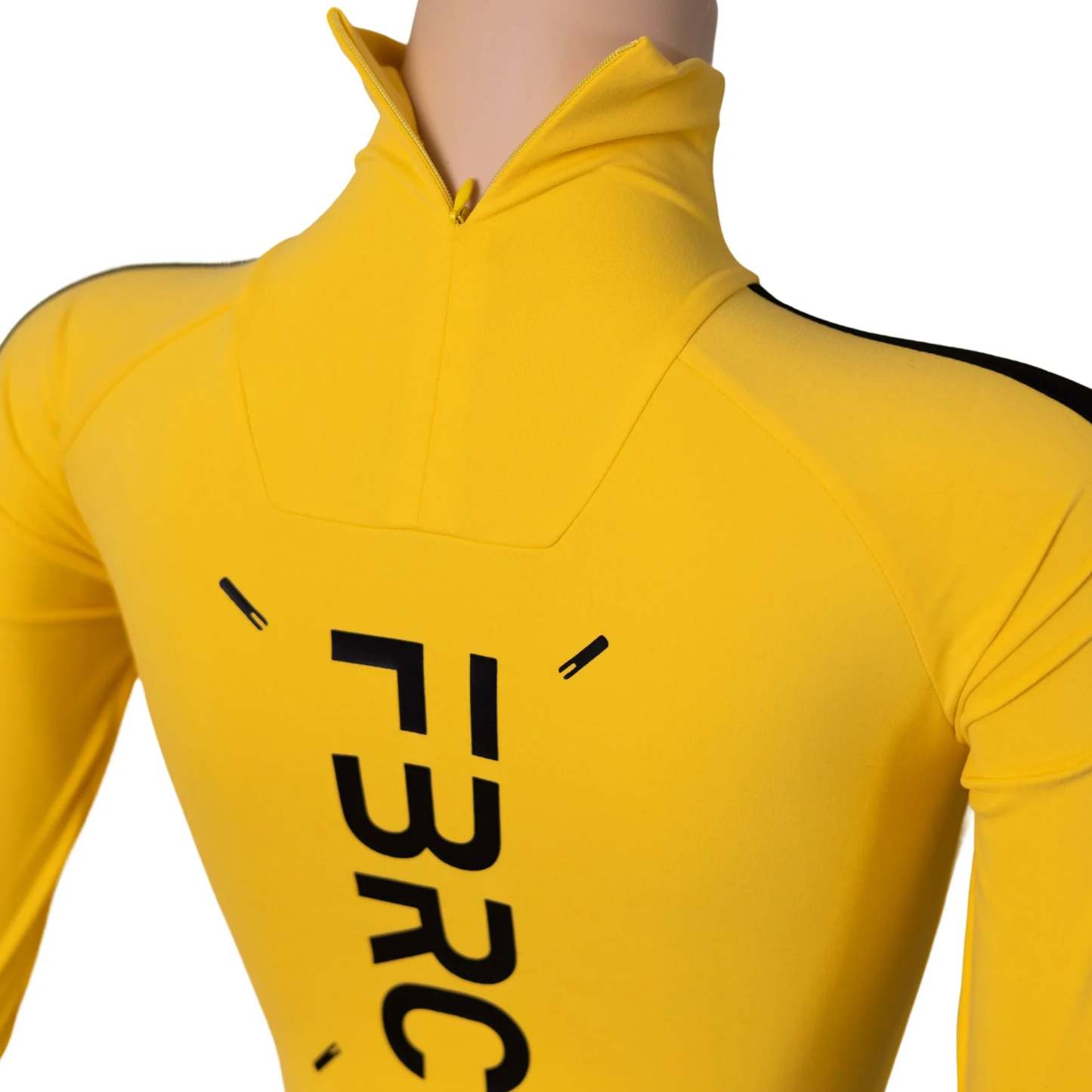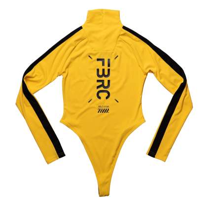 Discover the ABS-Type 501 yellow bodysuit, made from a stretchy mix of 75% Nylon and 25% Elastane that fits your shape flawlessly. Its elegant high turtle neck elevates your look, and the neck zipper makes dressing simple. Adjust your fit easily with three crotch hook settings for personalized comfort. Stand out with bold signature logos displayed on both the front and back.