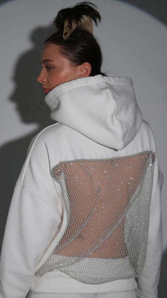 This isn’t just a hoodie—it’s your instant glow-up. The signature crystal mesh open back steals the show the second you step out, catching light for that "I just left a photoshoot" shine. Perfect for city nights, brunch dates, or whenever you want to add subtle sparkle to your vibe.