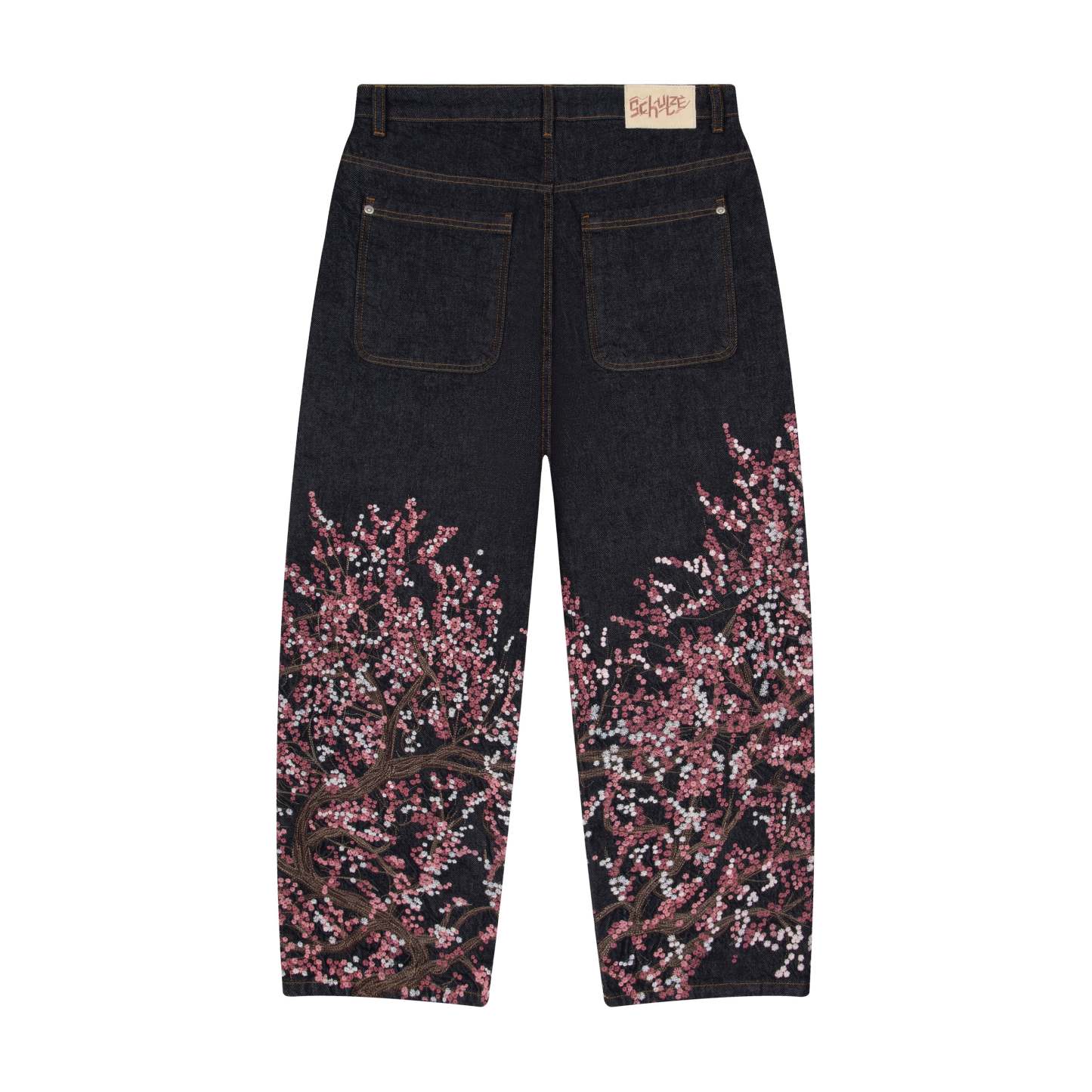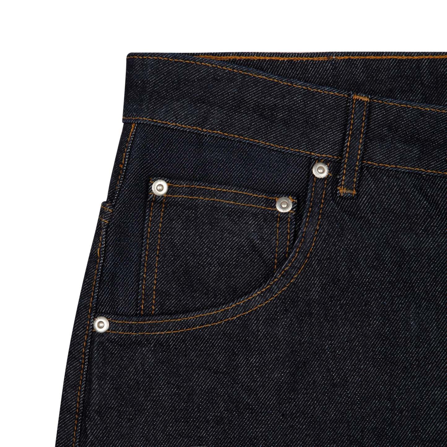 14,5oz denim / 100% cotton / embroidery on front and back / embroidered leather patch / wash inside out / straight fit / fits true to size