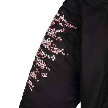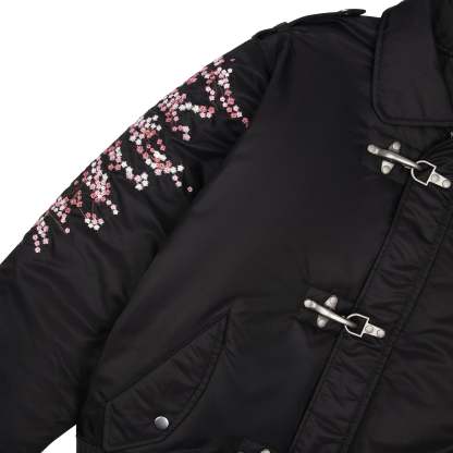 160gsm parachute fabric / 100% nylon / wind- and waterproof / polyester lining / fiber filling / ribbed collar, hem and cuffs / embroidery on back and sleeve / with JKJ zipper and fireman claps / fits true to size