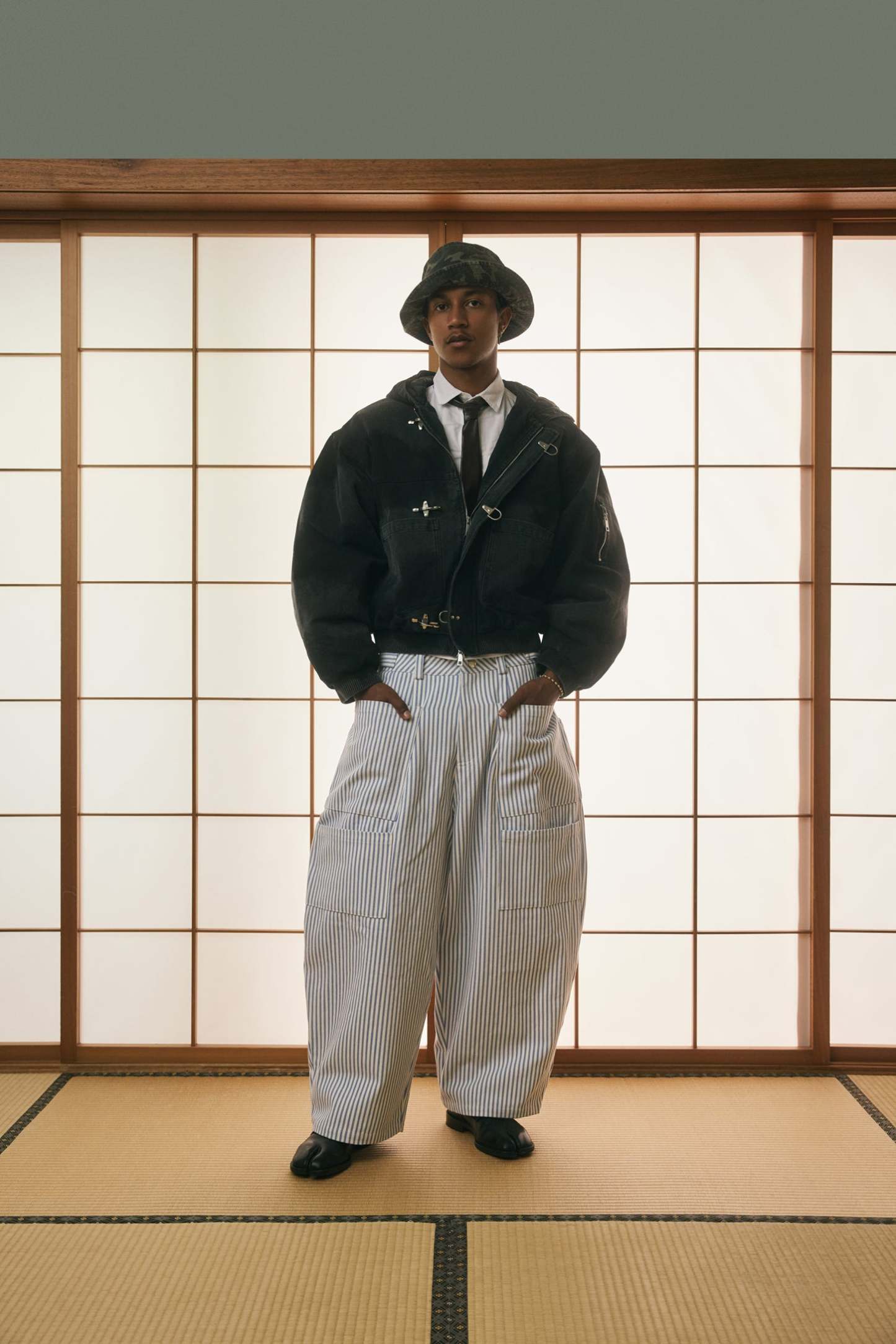 Shige 15oz Washed Black Canvas Clasp Bomber Jacket