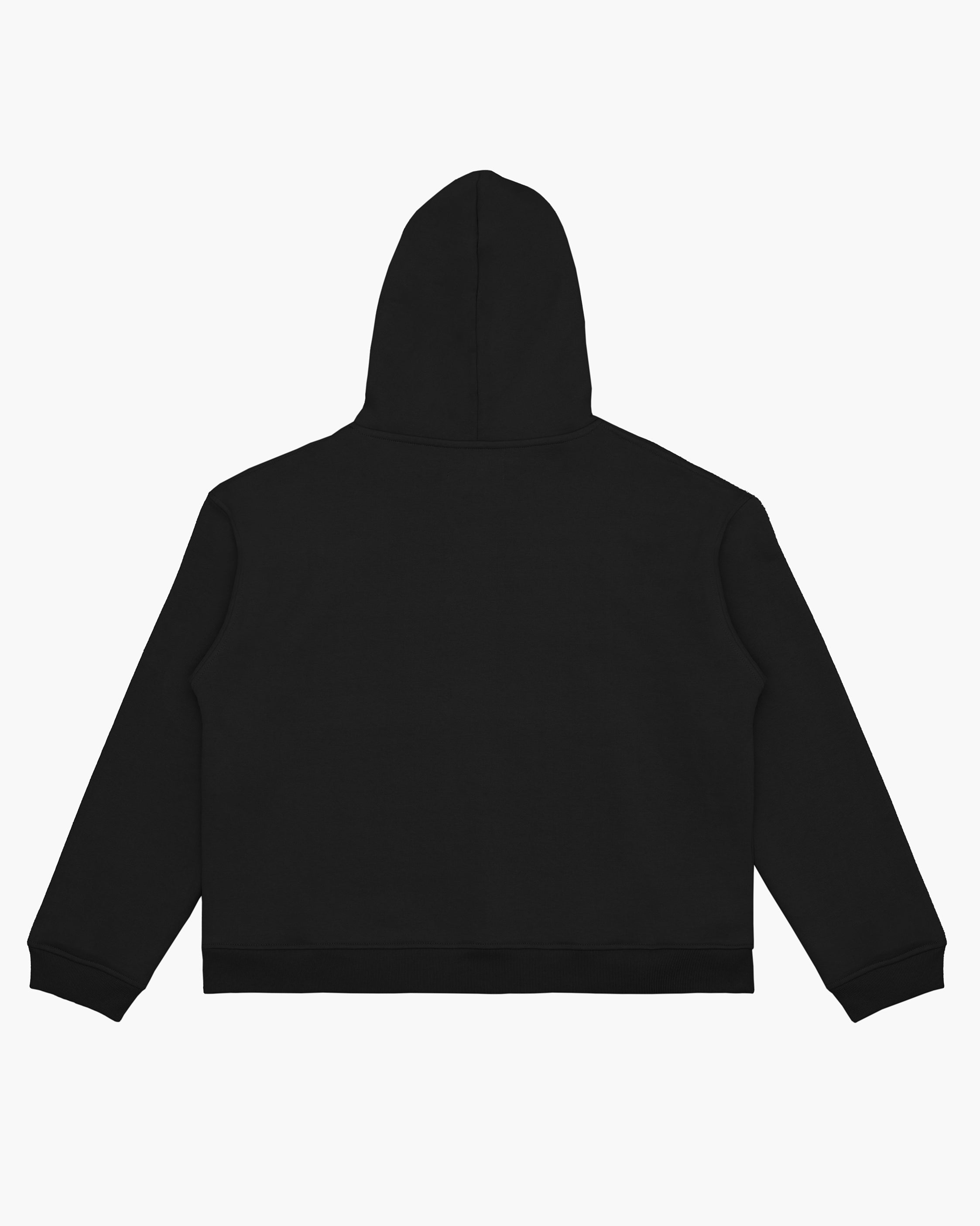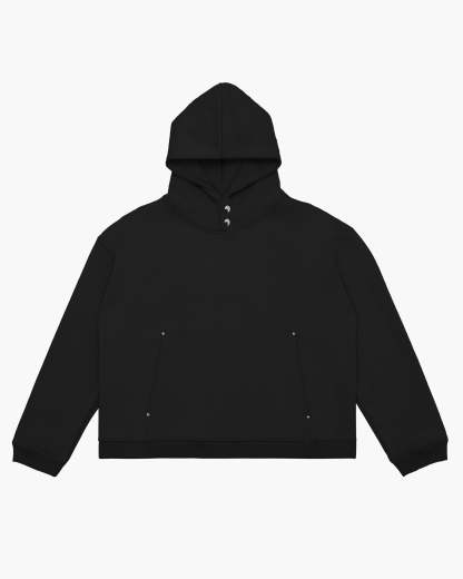Custom-milled 21.1oz. 100% French Terry CottonRiveted oversized kangaroo pocketSnap closure on hoodMetallic hardwareSlouchy and boxy fit