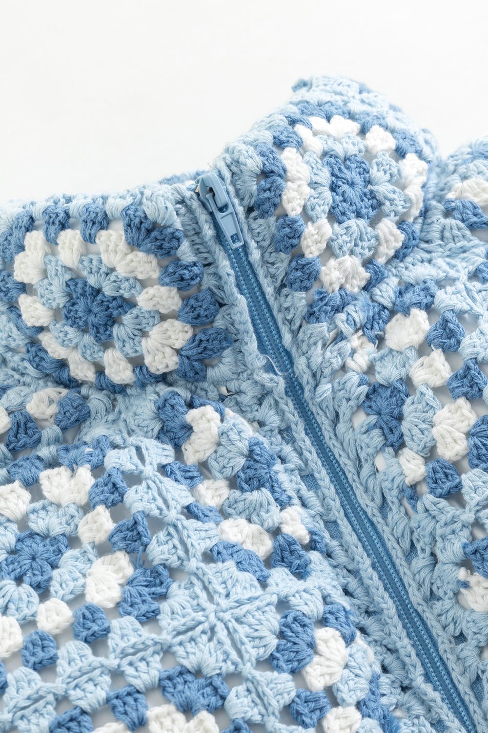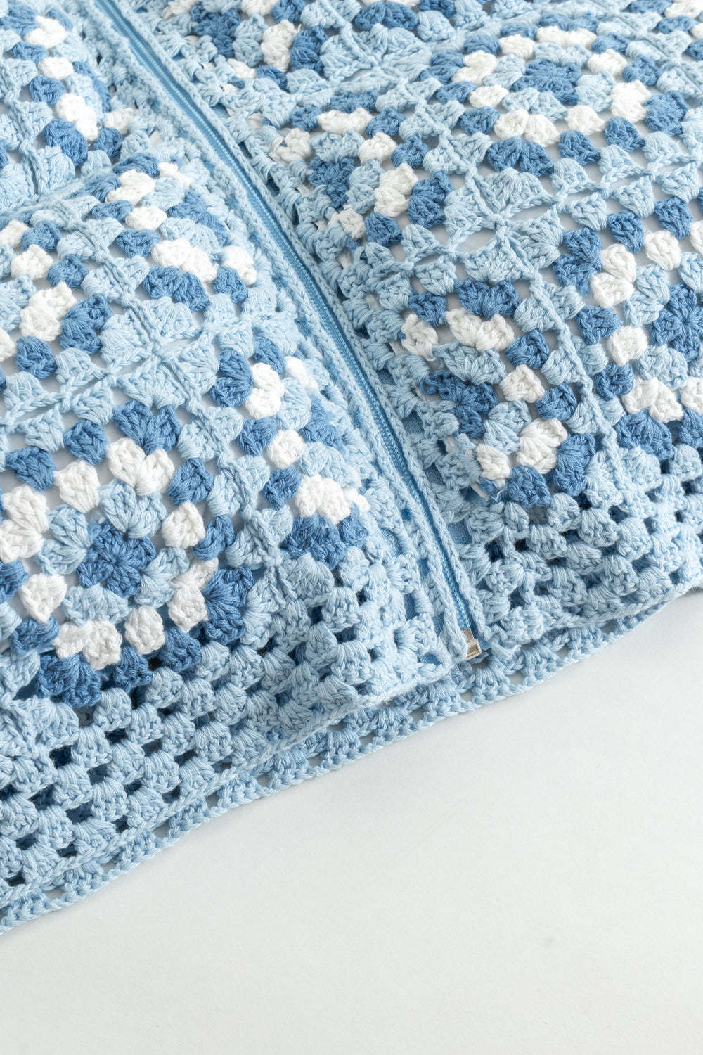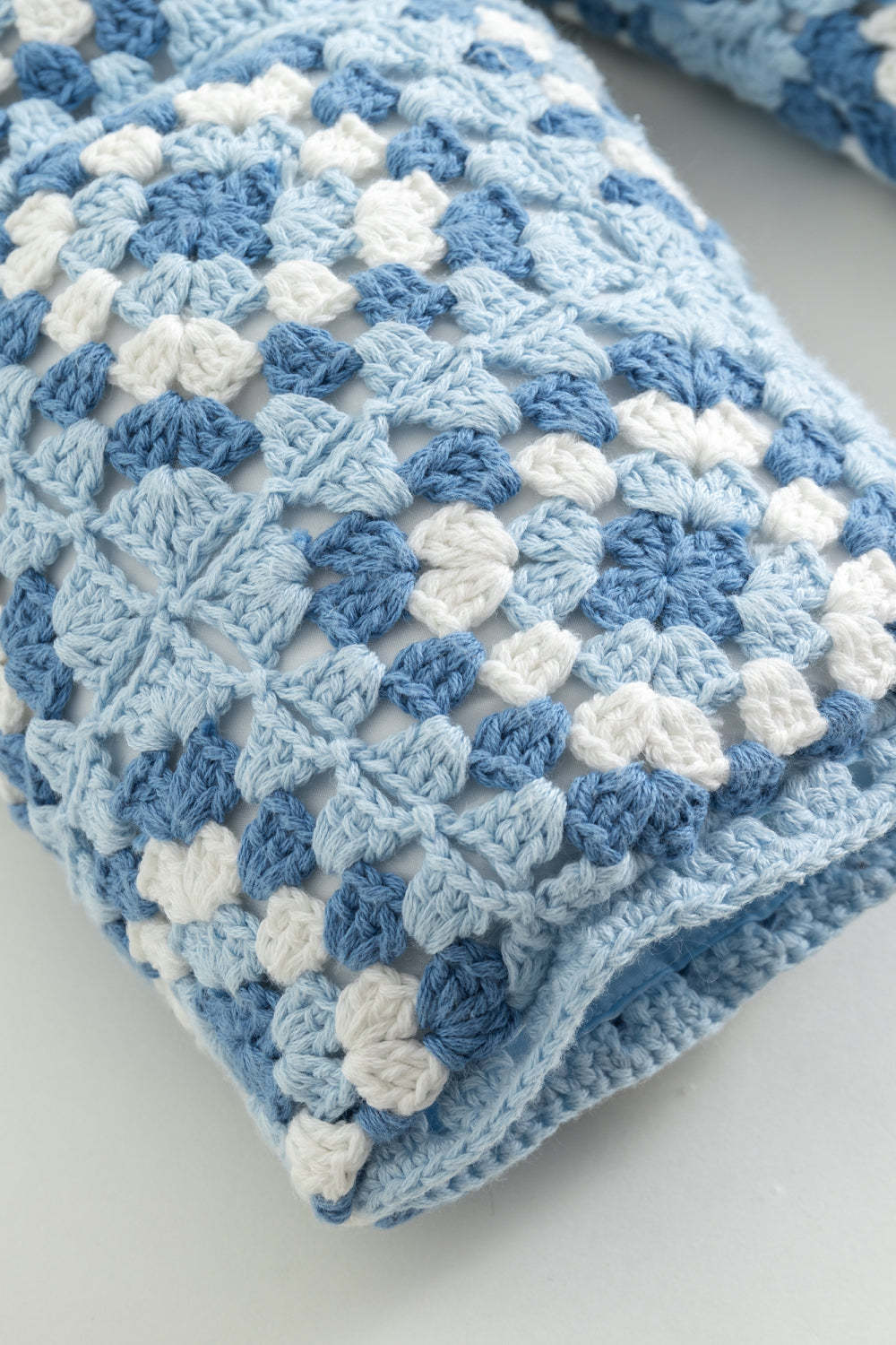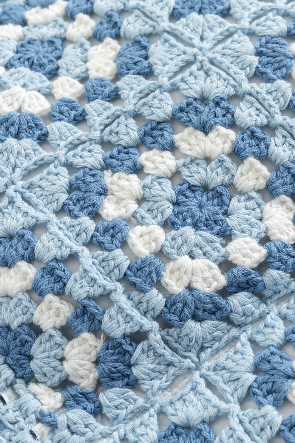The outer layer is hand-crocheted using classic granny square techniques, creating a bold, textured design. Inside, it’s baffled with soft cotton filling, offering warmth and structure for colder days. A perfect harmony of craftsmanship and functionality.