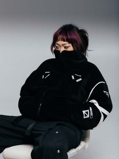 Heavyweight winter insulated sherpa jacket made of Teddy Fleece with embroideries on the front, sleeves, and straps on the left sleeve. Soft and comfortable, warm and breathable. Super Soft!