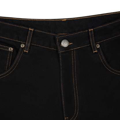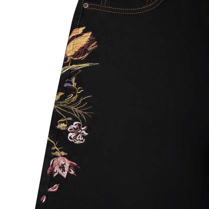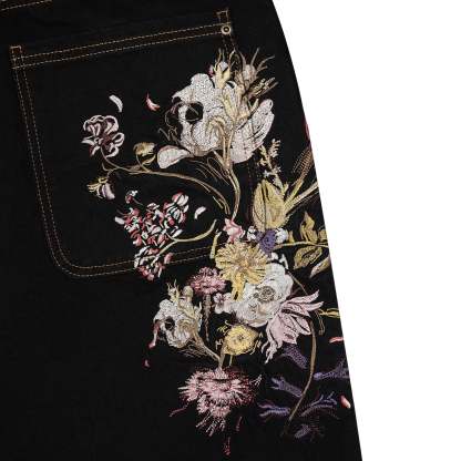 14,5oz denim / 100% cotton / embroidery on front and back / embroidered leather patch / custom button / baggy fit / fits true to size