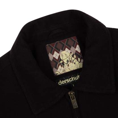 wool fabric / 100% plain leather sleeves / polyester lining / ribbed hem and cuffs / embroidery on front and back / leather appliqué embroidery on front chest / with YKK zipper / fits true to size
