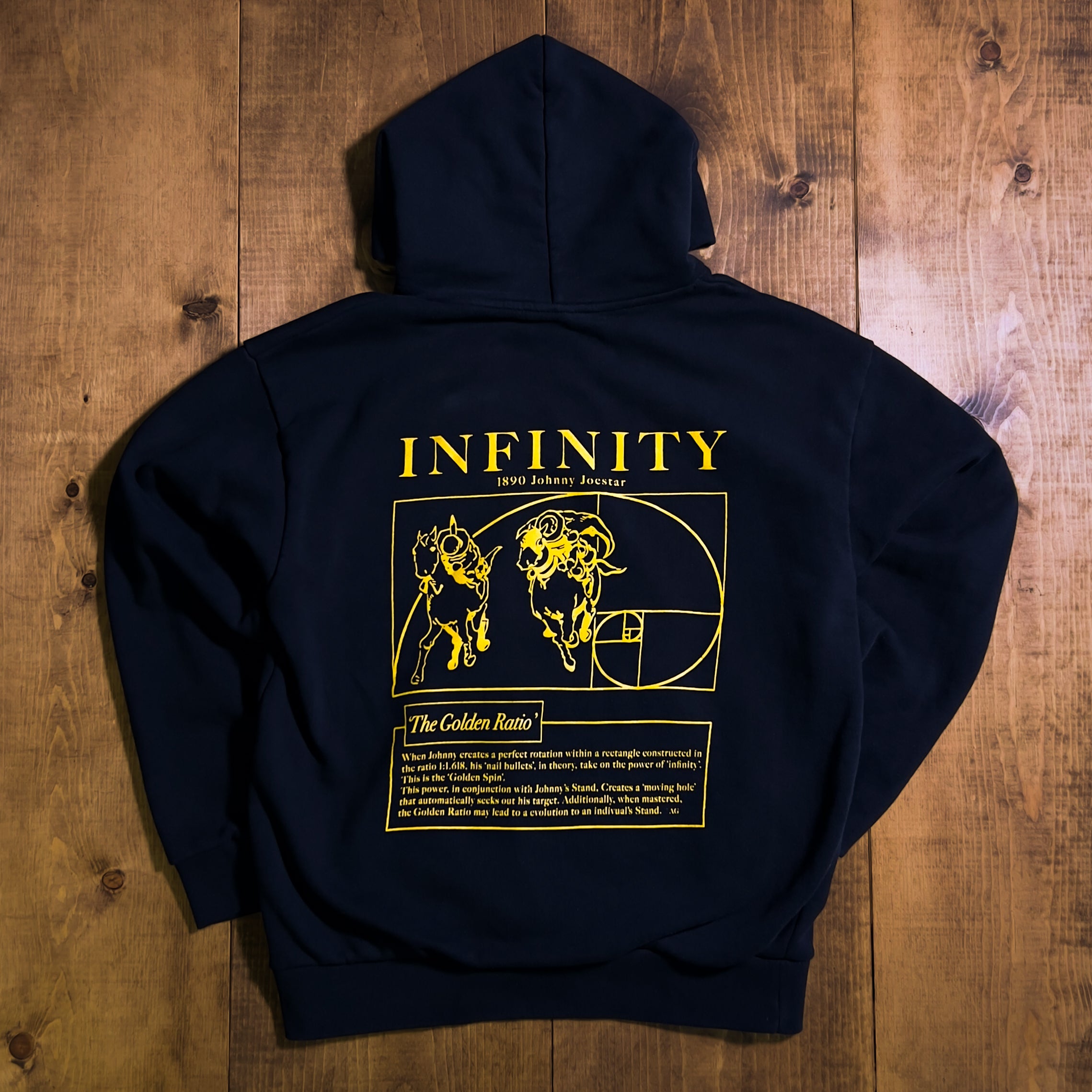 The Golden Ratio Hoodie combines heavyweight comfort with hand-screened precision, inspired by the iconic design from JoJo’s Bizarre Adventure Steel Ball Run. Crafted in-house for lasting quality, this hoodie offers a perfect fit and striking style that fans will appreciate. Elevate your look with a unique piece that stands out.