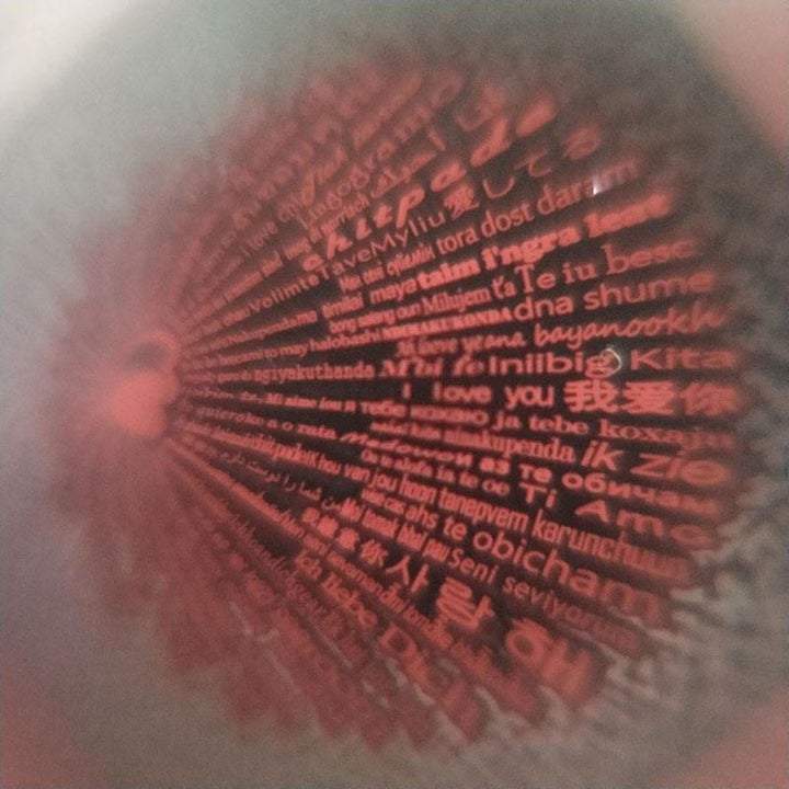 The center of the Love Projection necklace is actually a lens. Peer deep into the lens and discover an amazing secret: words and phrases of love from 100 different languages are written in this magical little world! Prepare yourself for the outpouring of love and kisses when you show your loved one this incredible secret hidden in their beautiful necklace. To better decipher the magical power of these phrases of love, a flashlight can be used to project these messages onto ceilings, walls, or any other surface!