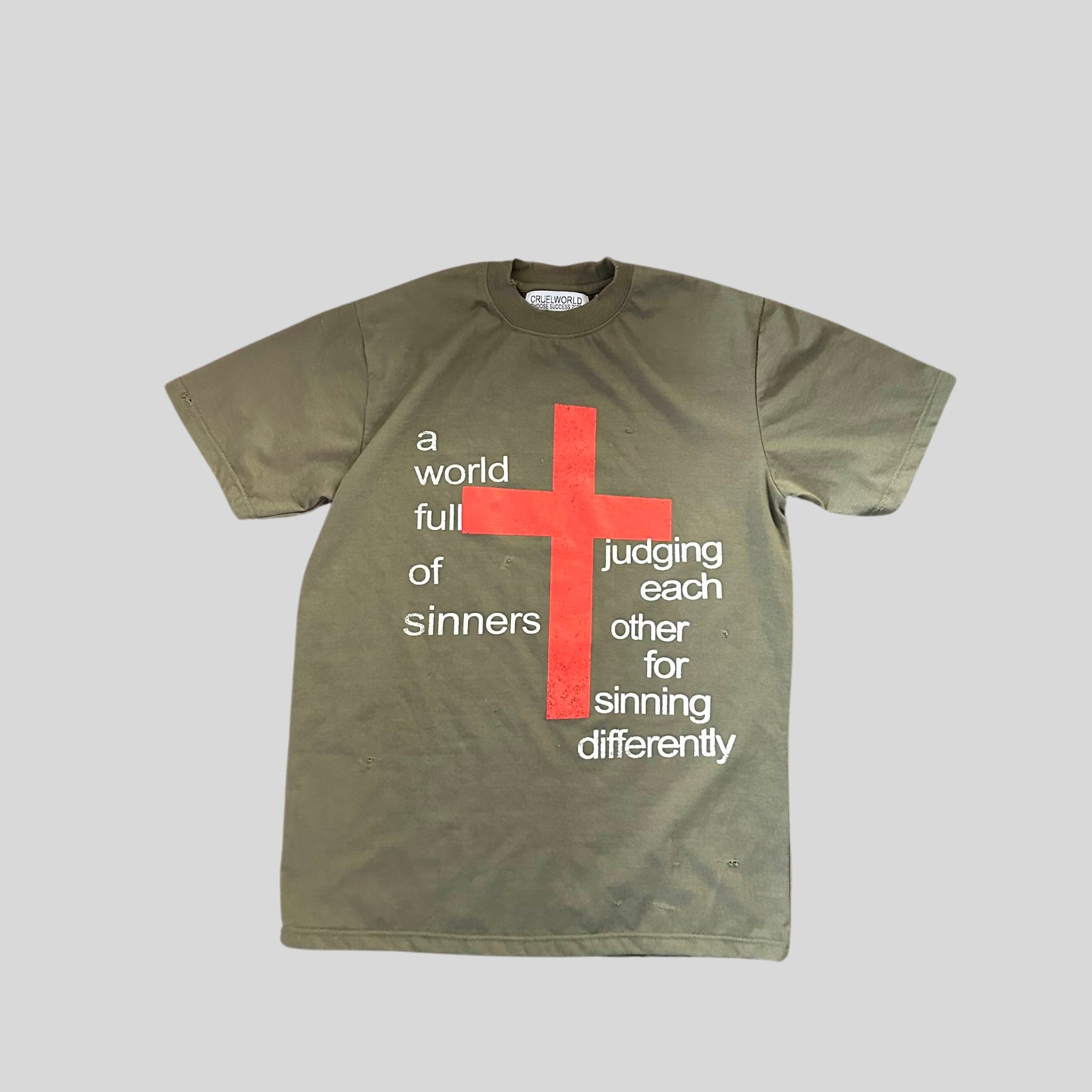 this shirt’s message highlights the irony of mutual judgment in a flawed world, encouraging self-reflection, compassion, and unity over condemnation.