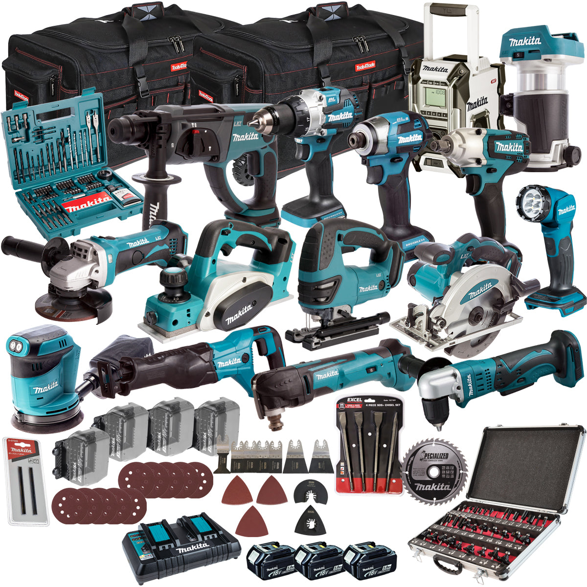 Makita 18V 15 Piece Combo Kit with 3 x 5.0Ah Battery Charger & Accessories Set T4TKIT-17221