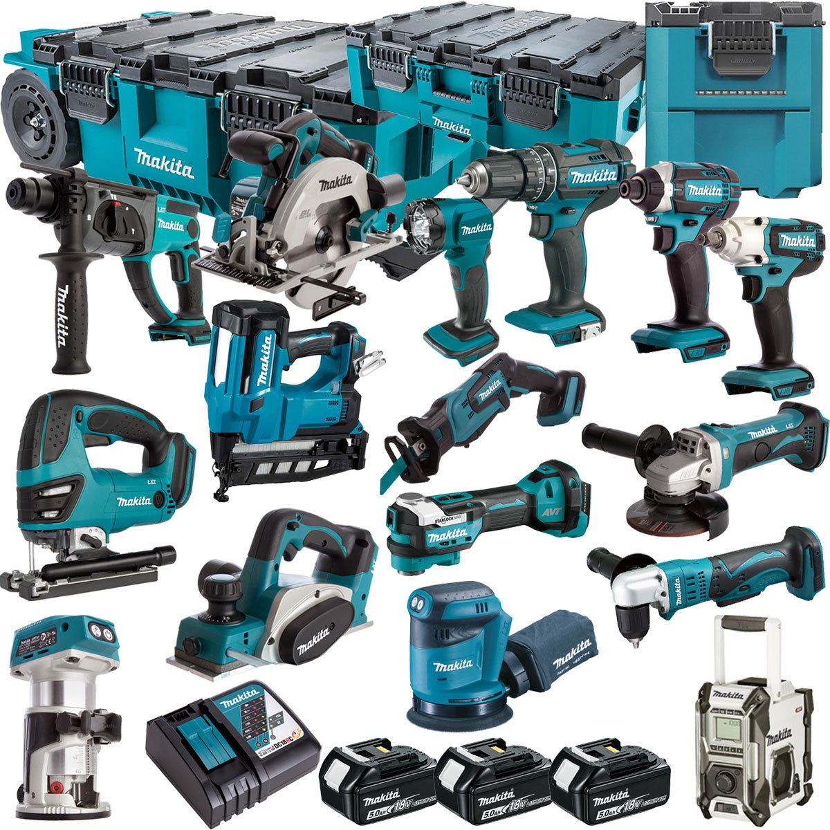 Makita 18V 16 Piece Combo Kit with 3 x 5.0Ah Batteries & MAKTRAK Trolley Toolbox
