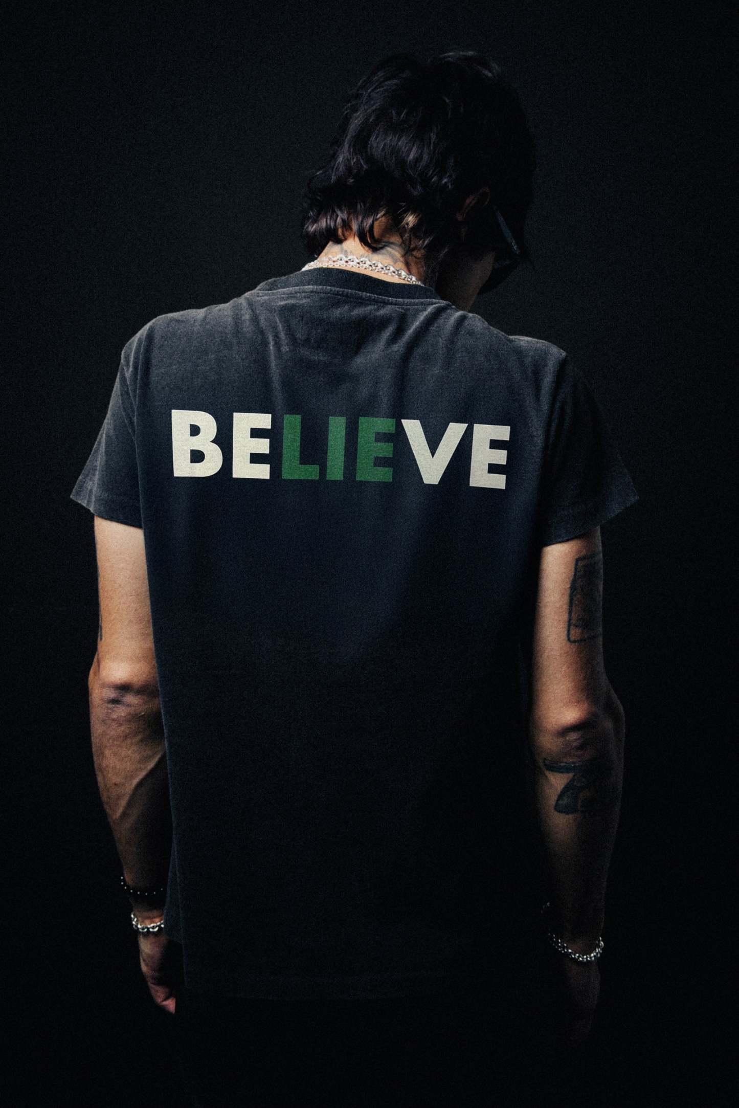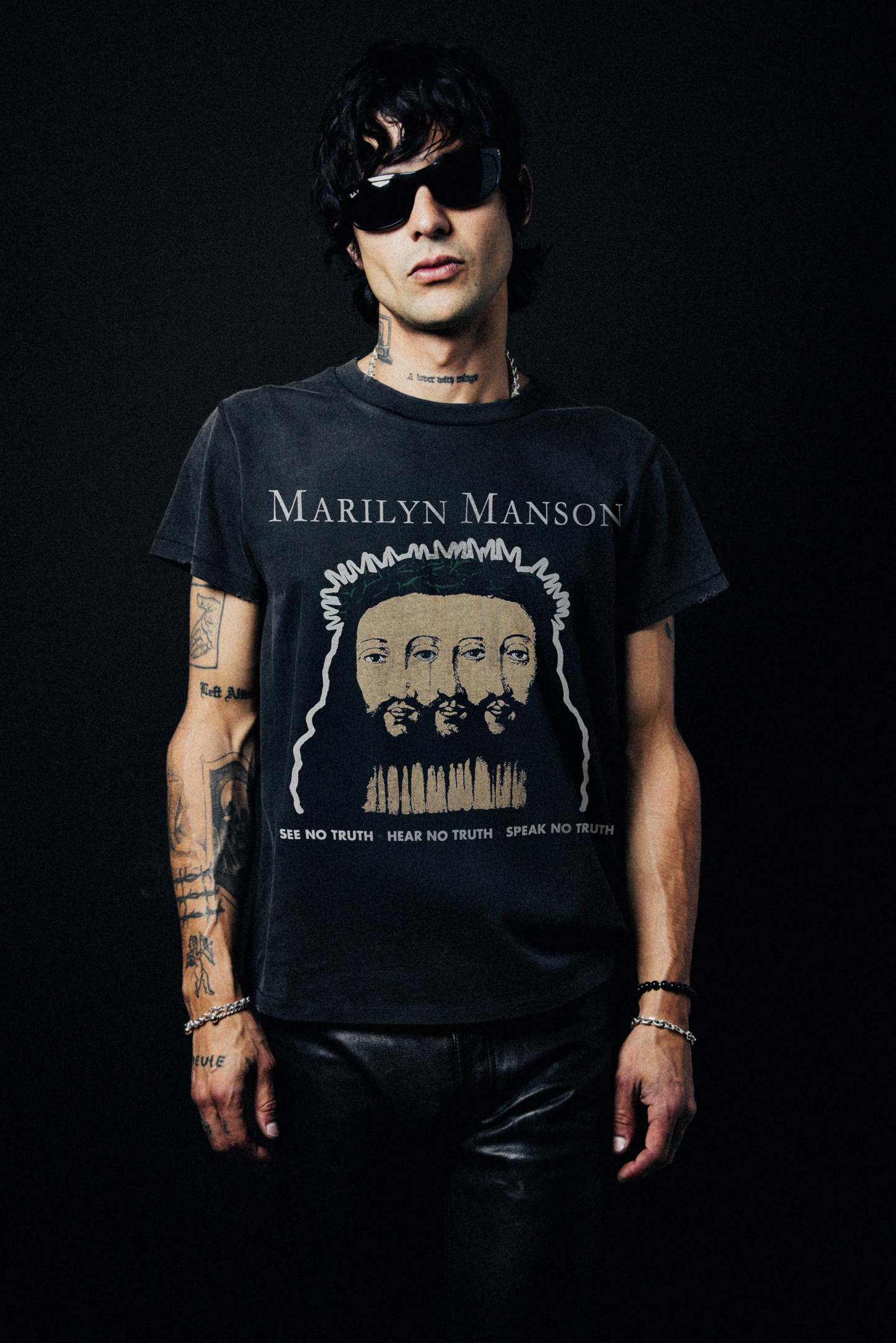 Recreated from a rare 90s original, this reissued Marilyn Manson tee captures the dark, rebellious energy of the era. Featuring the See No Truth, Hear No Truth, Speak No Truth graphic on the front and bold BELIEVE print on the back. Crafted from soft washed black cotton for that perfect lived-in feel and authentic vintage fade.