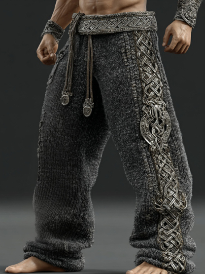 Men's Vintage Viking Tribal Jacquard Celtic Art Knitted Sweatpants