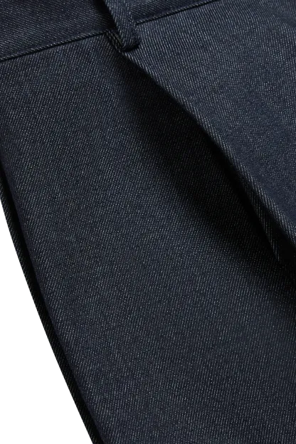 The garment is wide leg and loose fitting with hidden front pockets under front knife pleats.