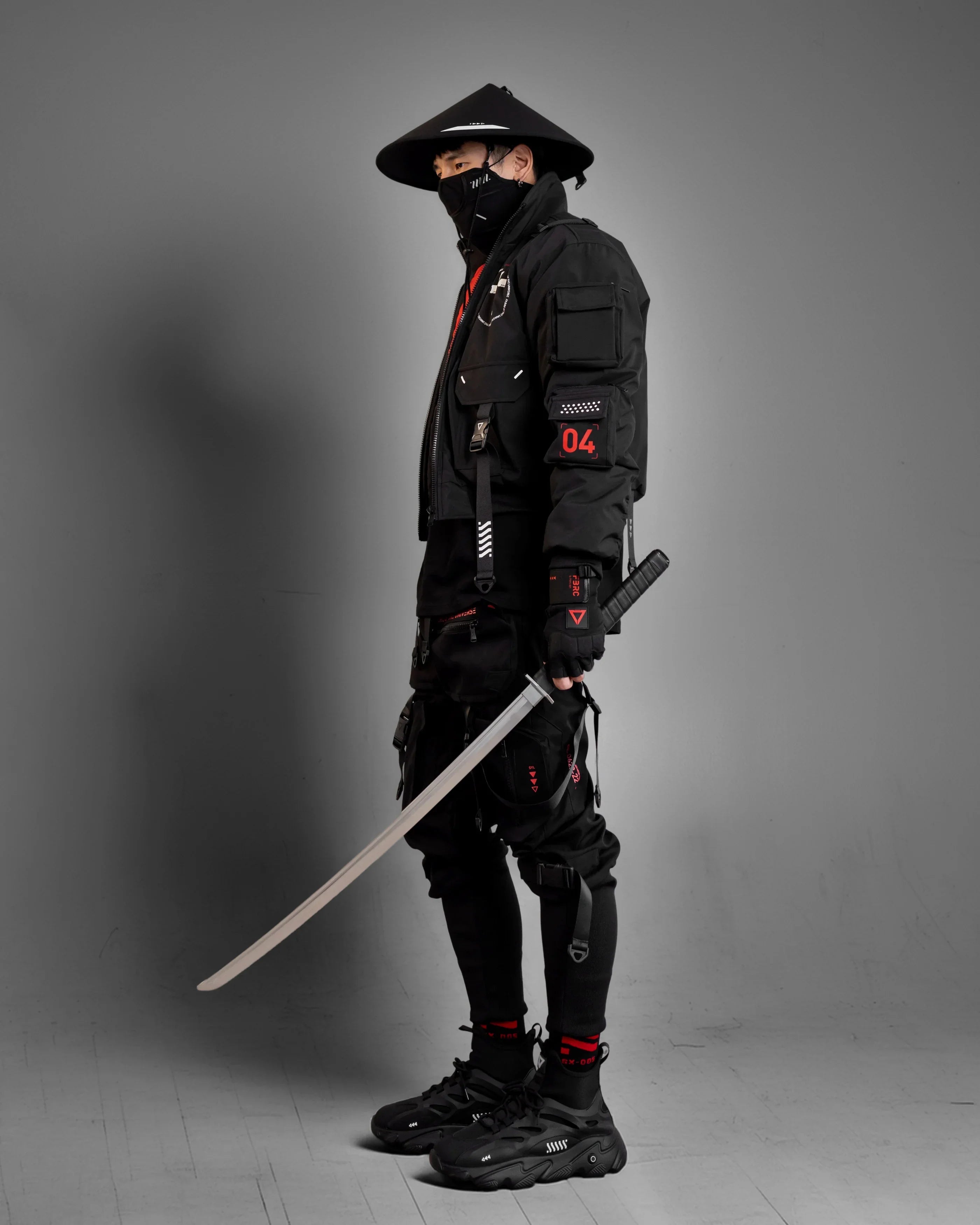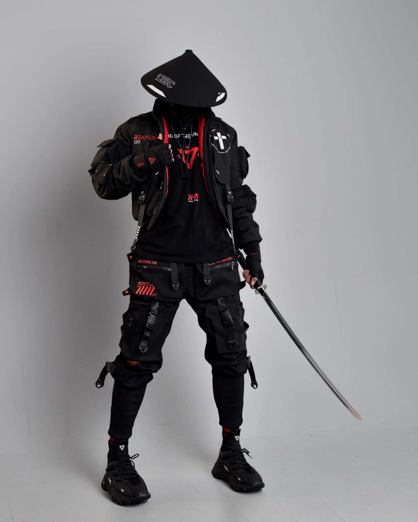 Tall standing collar. Pure black color.