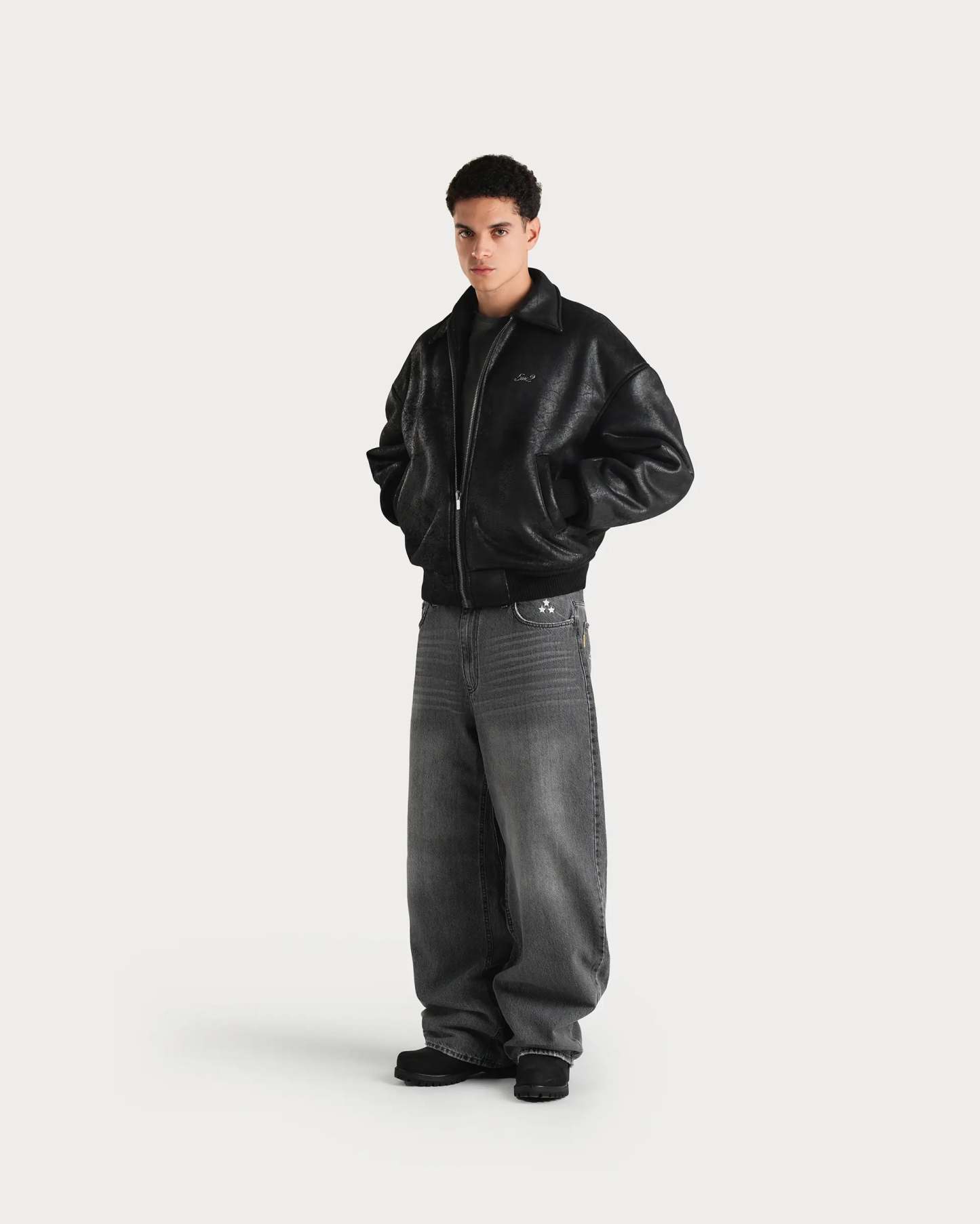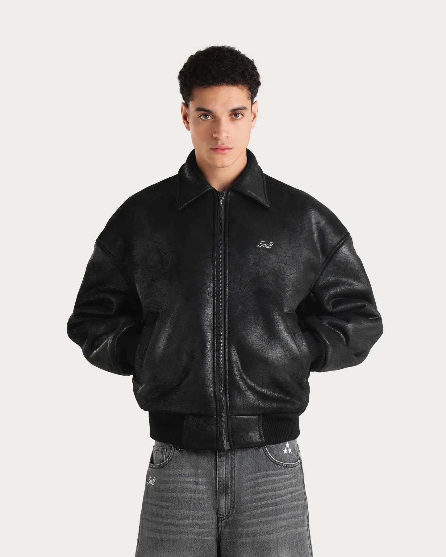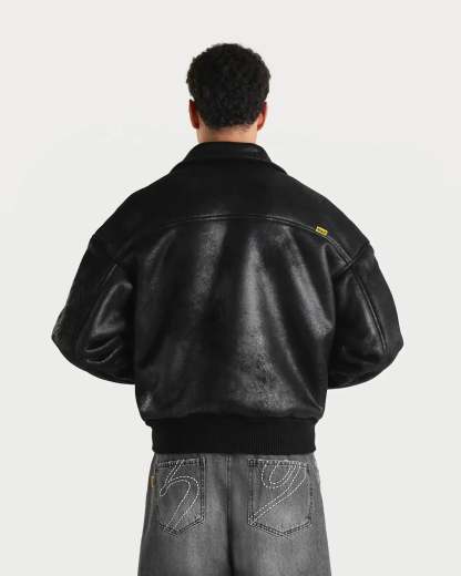 Due to the soft shearling material the fit is slightly bigger than the regular aviator jacket. For a cropped boxy fit we advise a to size down. For an oversized fit true to size