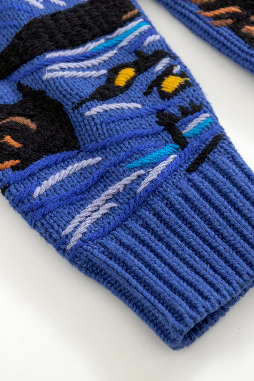 The embroidery was executed using thicker grouped threads, creating depth and tactile dimension that mirrors van Gogh’s brushwork. From the luminous yellows to the deep cobalt blues, every stitch embodies movement, emotion, and art in wearable form.
