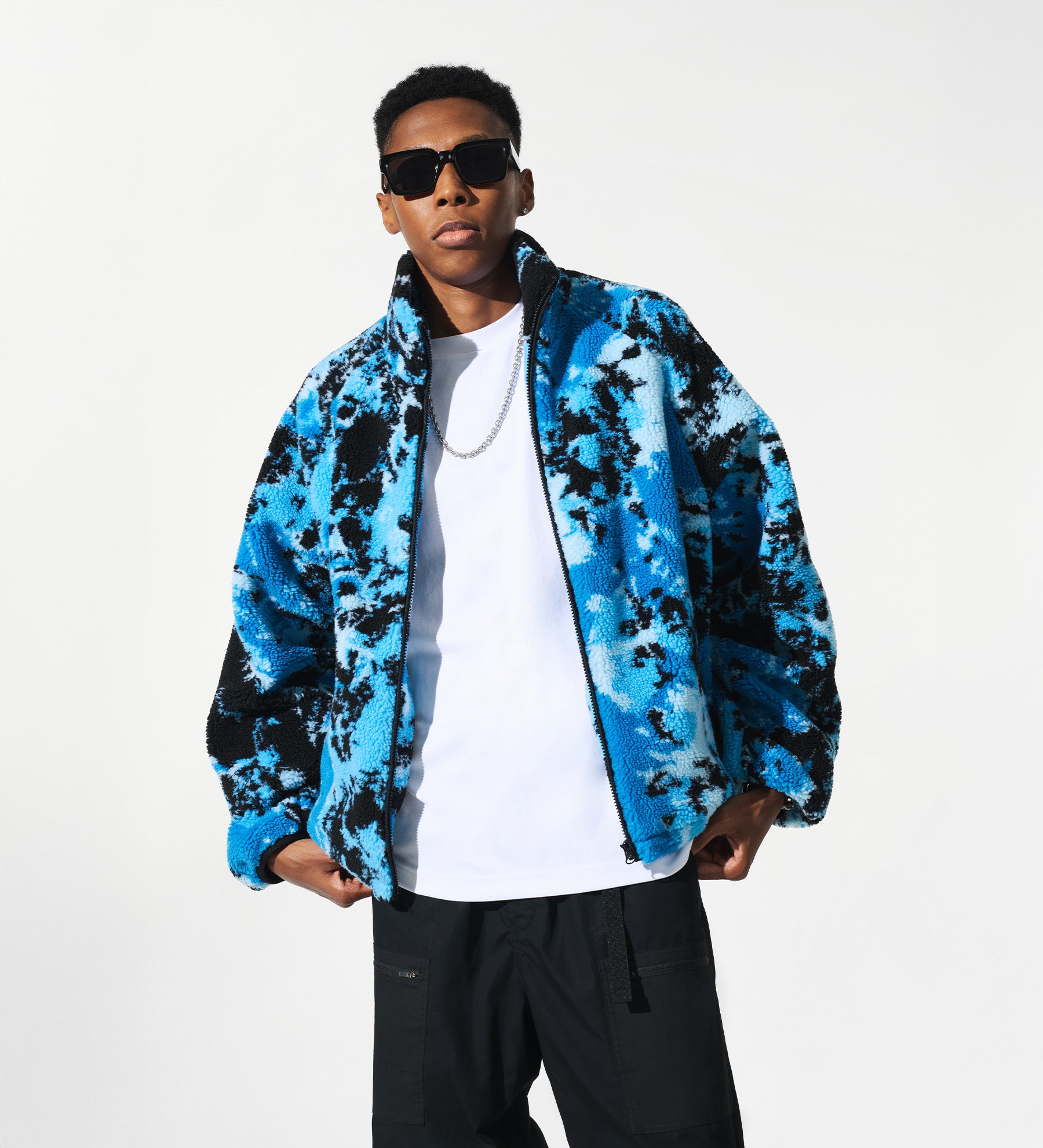 Studios ® Camo Fleece [Blue] - Sidemen Clothing: Studios ® Collection. SDMN_STUDIOS® woven tag. Custom XIX cord stoppers. Pongee polyester lining. 100% Polyester. Shop the collection now!