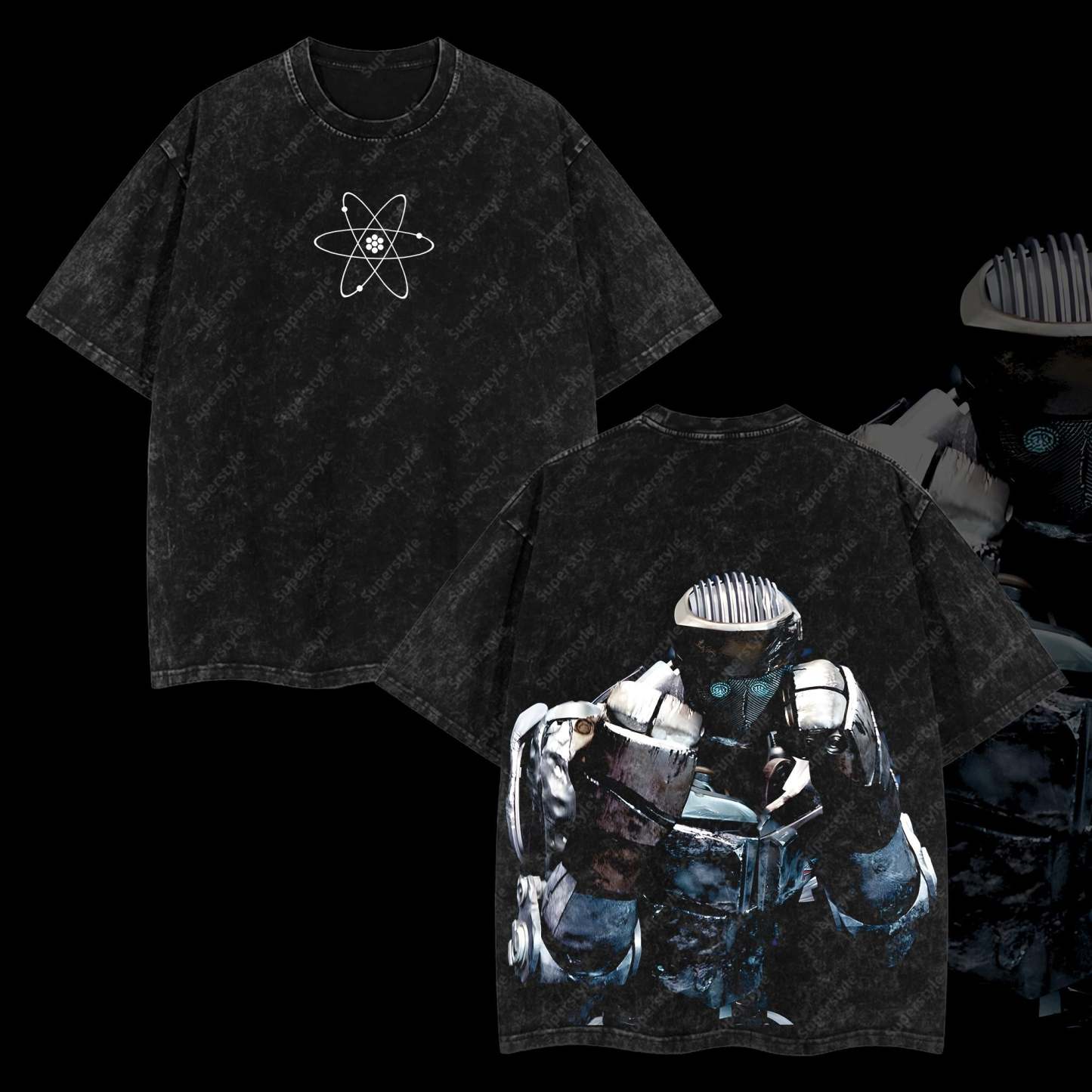 Atom - Real Steel Edition Double Printed Oversize Lightweight Acid Washed T-Shirt