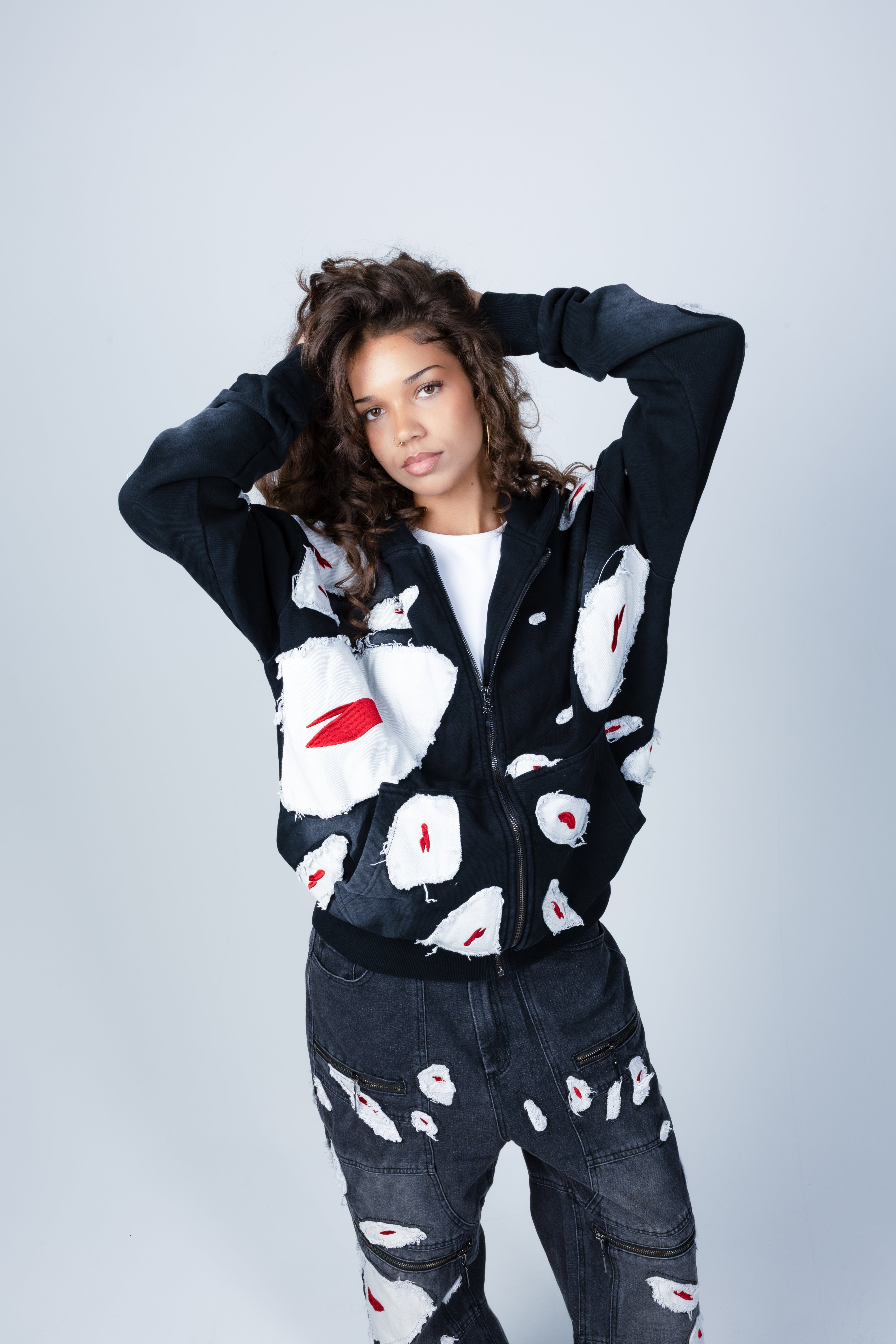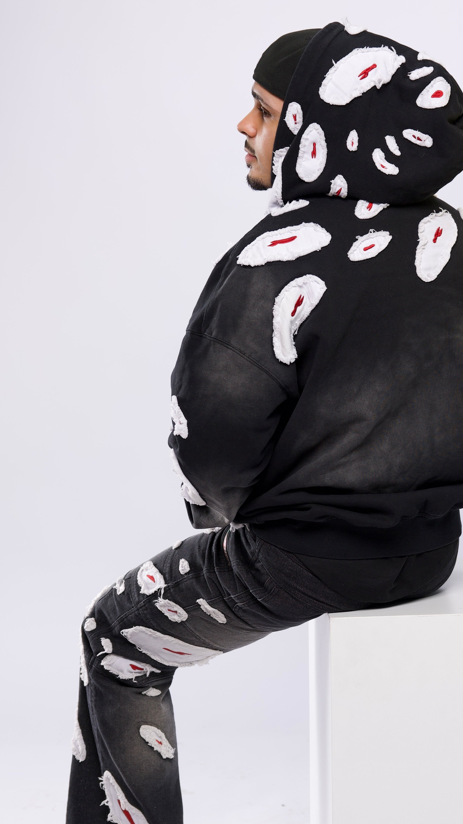 Step into the darkness with the Allmighty Zip-Up Hoodie, a black, lightly washed hoodie covered in the eyes of the allmighty. Whether you catch the reference or just love the dark streetwear aesthetic, this piece is the perfect mix of mystery and style. A bold statement on its own, but for the ultimate look, pair it with the Allmighty Baggy Pants for a complete, unstoppable fit.