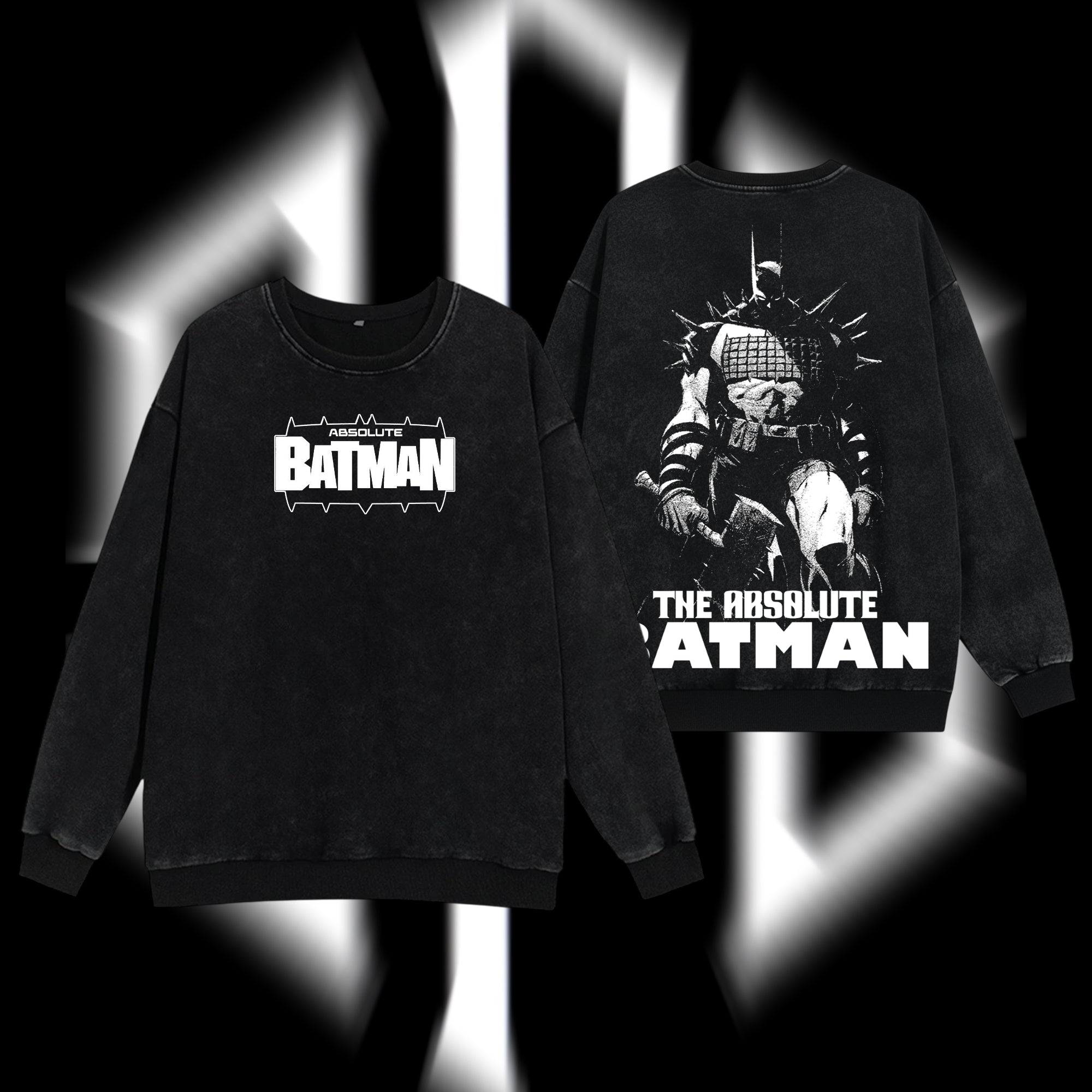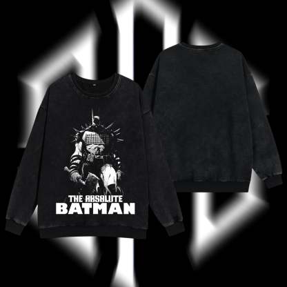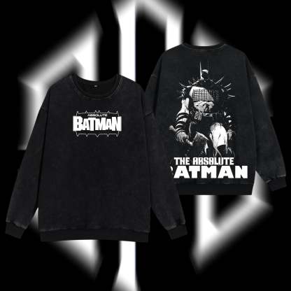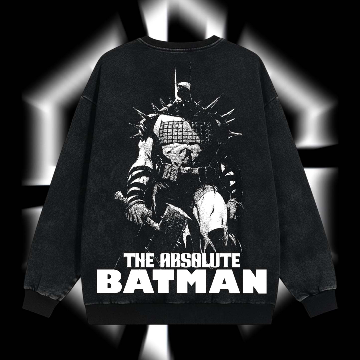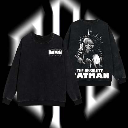 The Dark Knight "Absolute Batman" - The Gotham Guardian Hero Verse DC Comics Edition Double Printed Oversize Lightweight Acid Washed Sweater