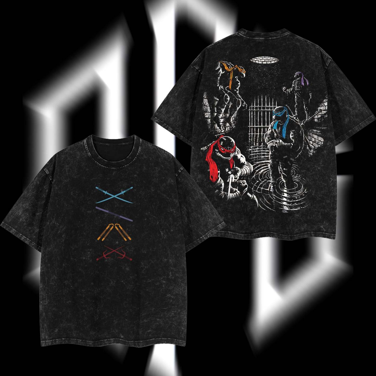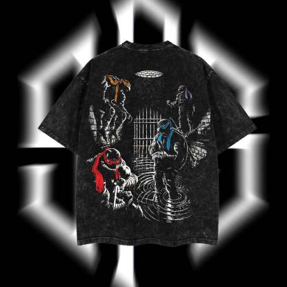 Teenage Mutant Ninja Turtles - Ninja Turtles Movies Film Edition Double Printed Oversize Lightweight Acid Washed Tee T-shirt