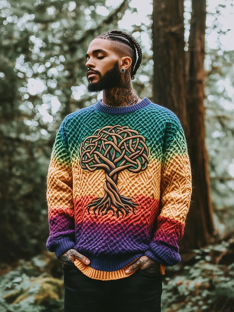 Vintage Tree Of Life Pattern Warmth Knitted Jacquard Unisex Sweater