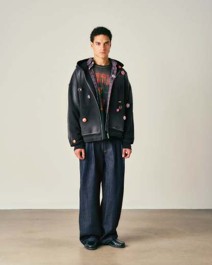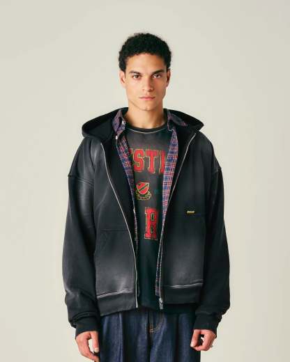 Washed Pin Zip Hoodie