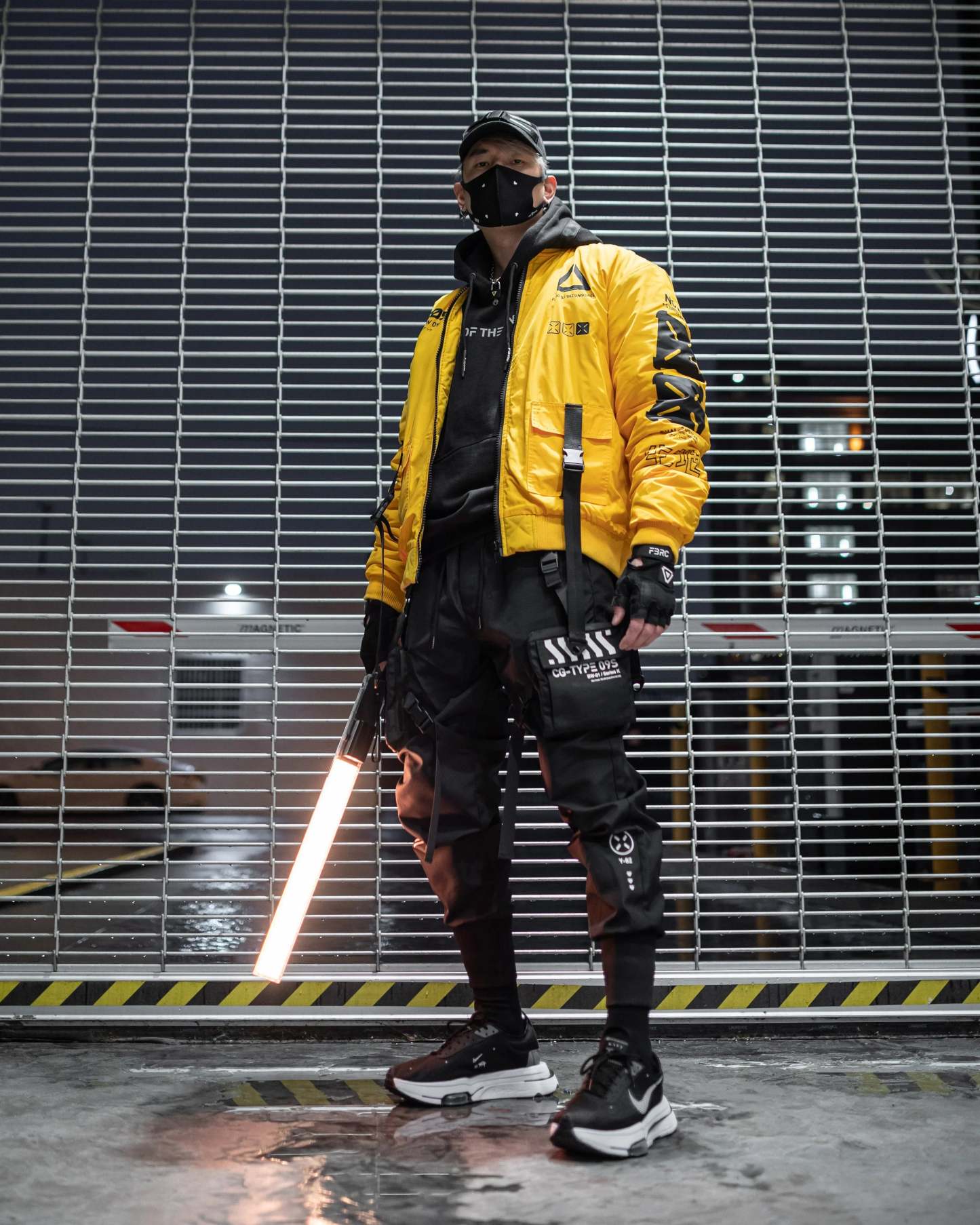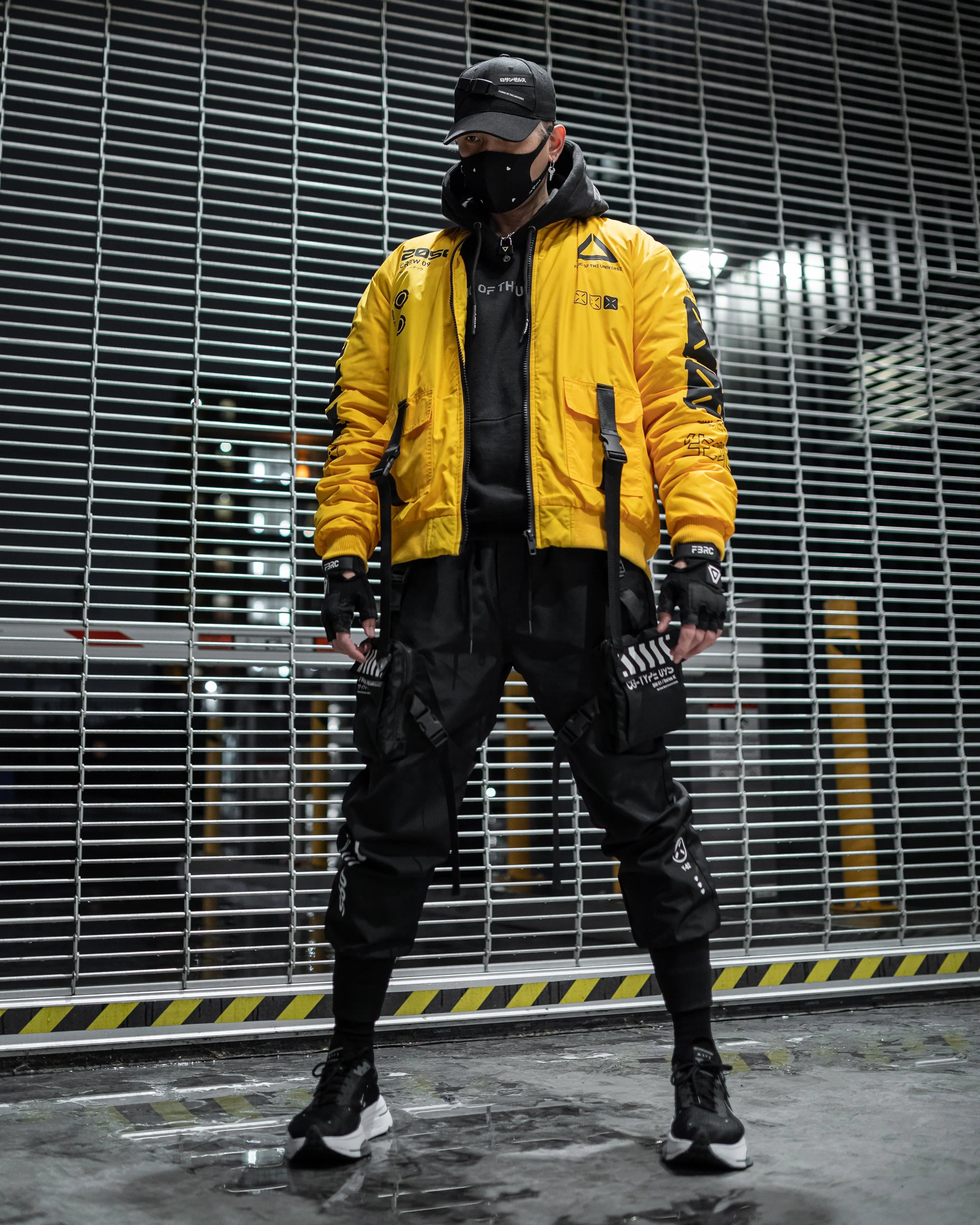 Fabric of the Universe Y-2050 Gold Bomber Jacket.