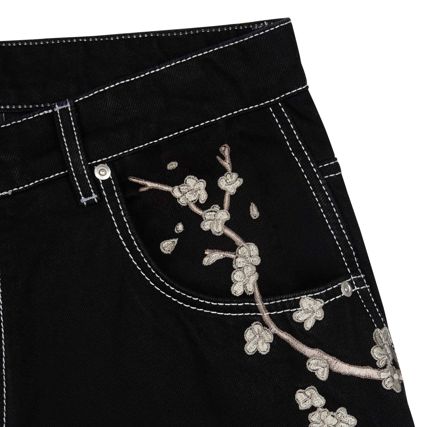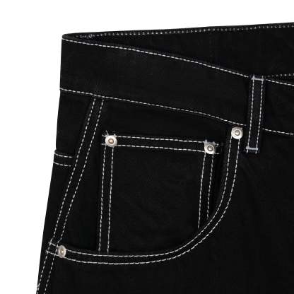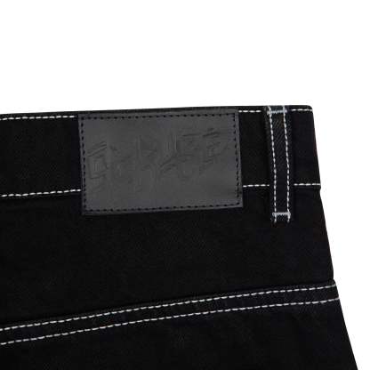 14oz denim / 100% cotton / seams on back / embroidery on front and back / embroidered leather patch / custom button / wash inside out / fits true to size